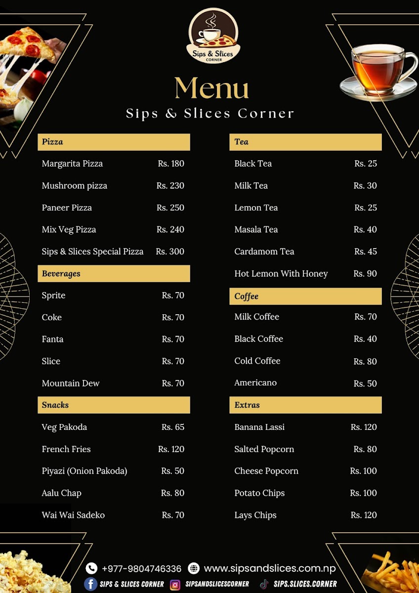 Patrons rave about the quality and ambiance, making it a perfect place to unwind with friends or family. With affordable prices, it's no wonder that Sips & Slices Corner has quickly become a local favorite. Whether you're grabbing a scone or enjoying a slice of pizza for NPR 180, your taste buds are in for a treat!